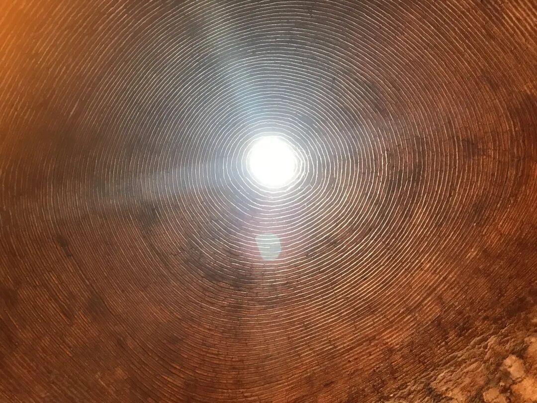 躲在老窑内向上望,层层窑砖砌出一圈圈均匀的圆环,宛如一圈圈时空的涟漪,拱卫着中间一片明亮的虚空。