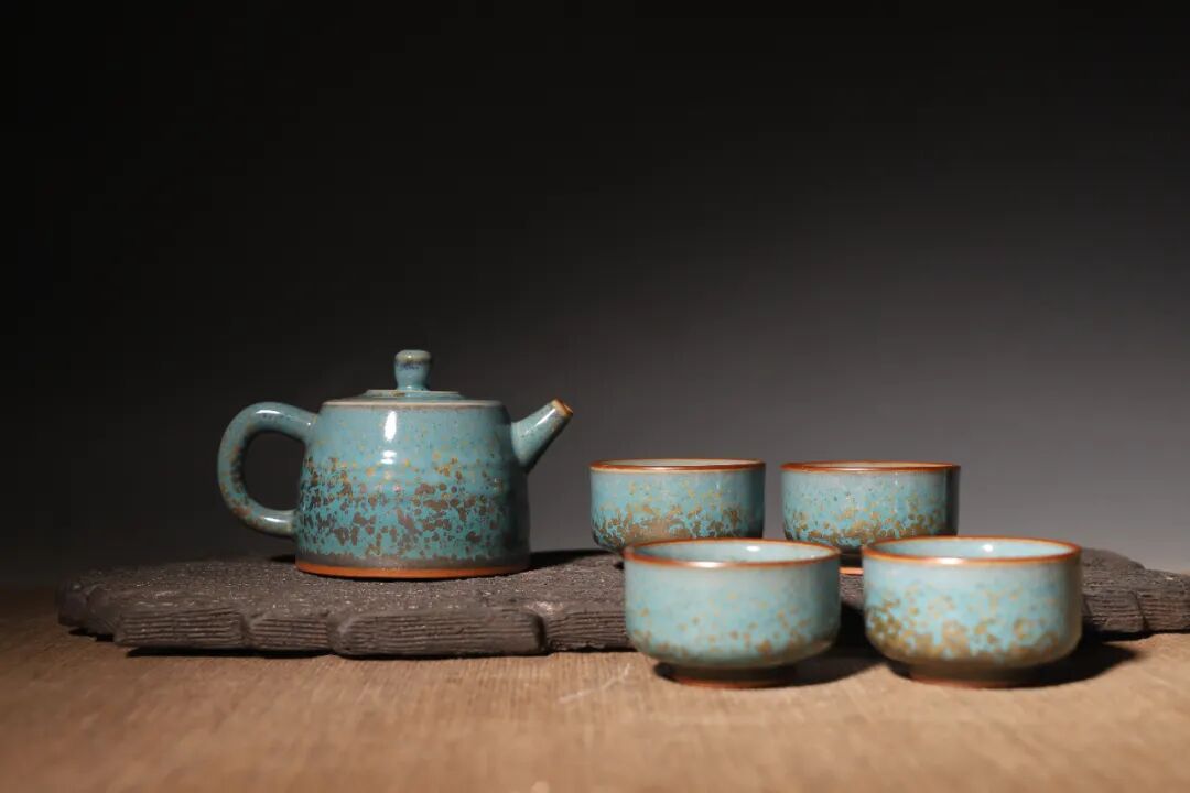 如果你认为单只杯子还不足以让你一览钧瓷之美,本次我们还为大家挑选了一款性价比非常高的周家钧窑茶器套装。