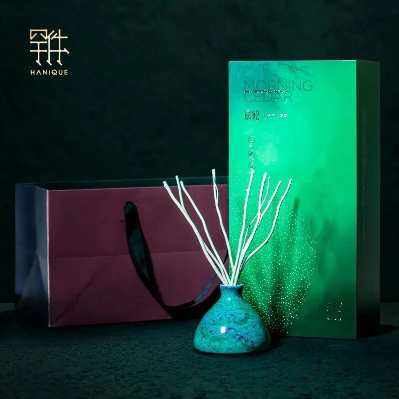 除了精美的钧瓷杯,本次我们还为大家带来了一款香薰,这款香薰花瓶由周家钧窑与罕件联名打造。