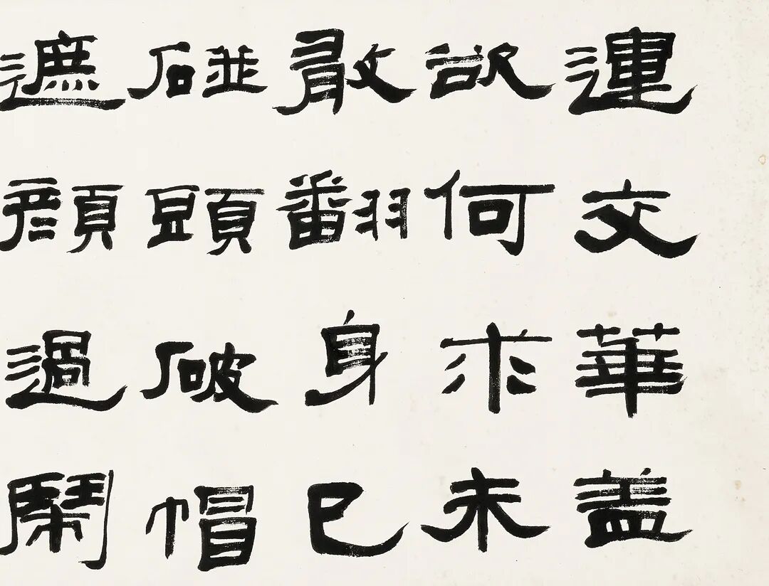 来楚生于篆刻、书法、绘画均有极高造诣,按其自评,则为书法第一,篆刻第二,绘画第三。其篆刻最为人称道,用篆则篆隶结合,布局则简练奇峭,用刀则丰富多变,最终归于秦汉古玺之质朴苍浑,在晚清文人篆刻的温雅与近代职业印家的豪放之间,找到一条兼具两者之长的大道。其书法四体皆能,尤以行草、隶书冠绝一时,行草以黄道周为宗,并巧妙融入王羲之的通脱飘逸、颜真卿的浑厚重拙、米芾的欹斜爽利,可谓“奔放处不离法度,精微处又照顾到气魄”。隶书则沿袭汉人正脉,于《曹全碑》《礼器碑》《石门铭》《张迁碑》等浸淫尤深,后又参以汉简笔法,形成一种纵逸率真又潇洒流丽的个人风格。而在绘画上则擅长花鸟,集了八大、赵之谦诸家之长,画风明丽洗练,气韵生动,展现出过人的笔墨功夫。纵观其艺术的取法及其转变,钱君匋1973 年在集拓《然犀室印存》的题辞中说得最为透彻: