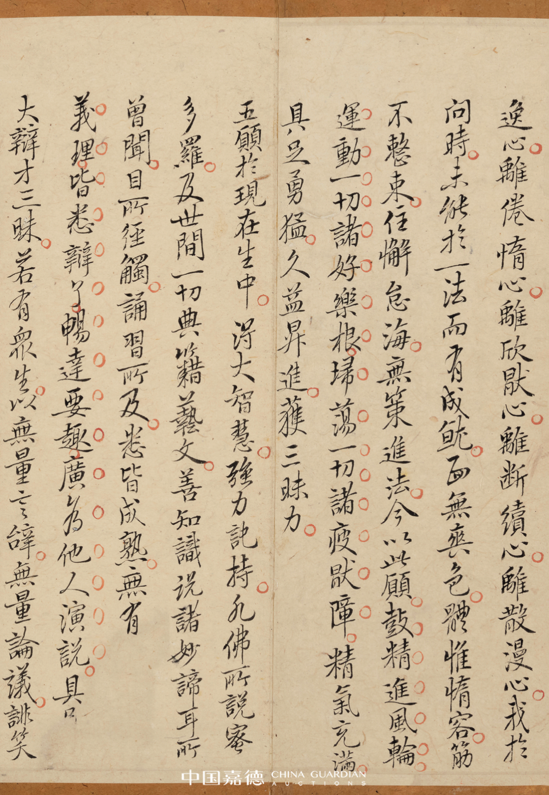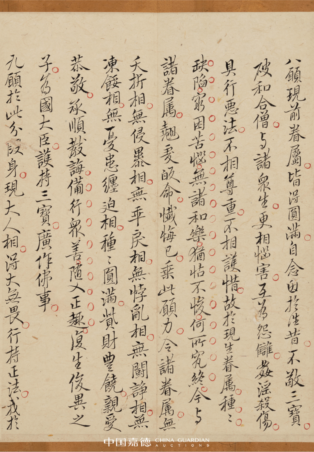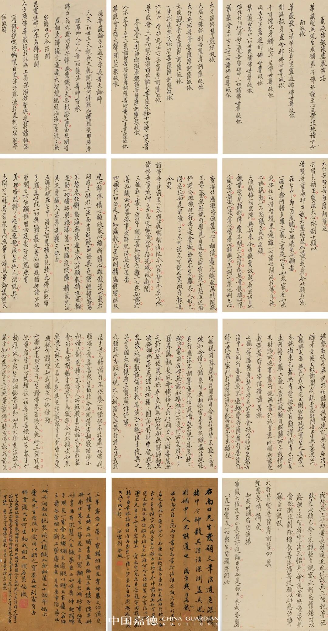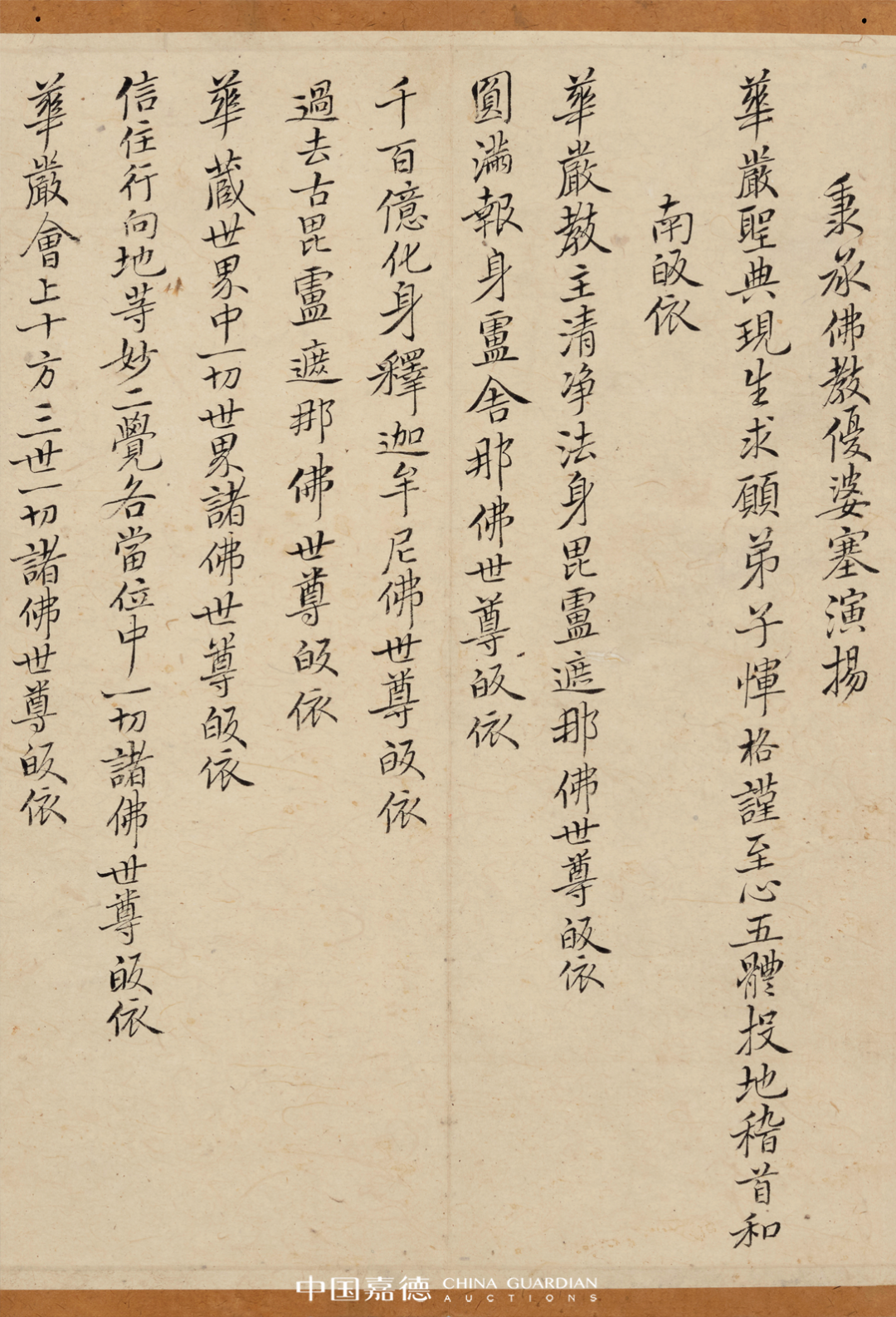 说明:是册经继述堂汪恭、稻香、壮陶阁裴景福递藏。另据裴氏题跋,此册壮 陶阁庋藏三十余年,辛酉年(1921)前赠予夔文先生。因此甲子年(1924)裴氏 《壮陶阁书画录》誊清稿本中,不及录入辛酉年(1921)刘启琳、夔文及徐名 世三人题跋文字。又,《壮陶阁书画录》与《发愿文》末尾裴景福题跋款字 略有不同,余皆吻合。