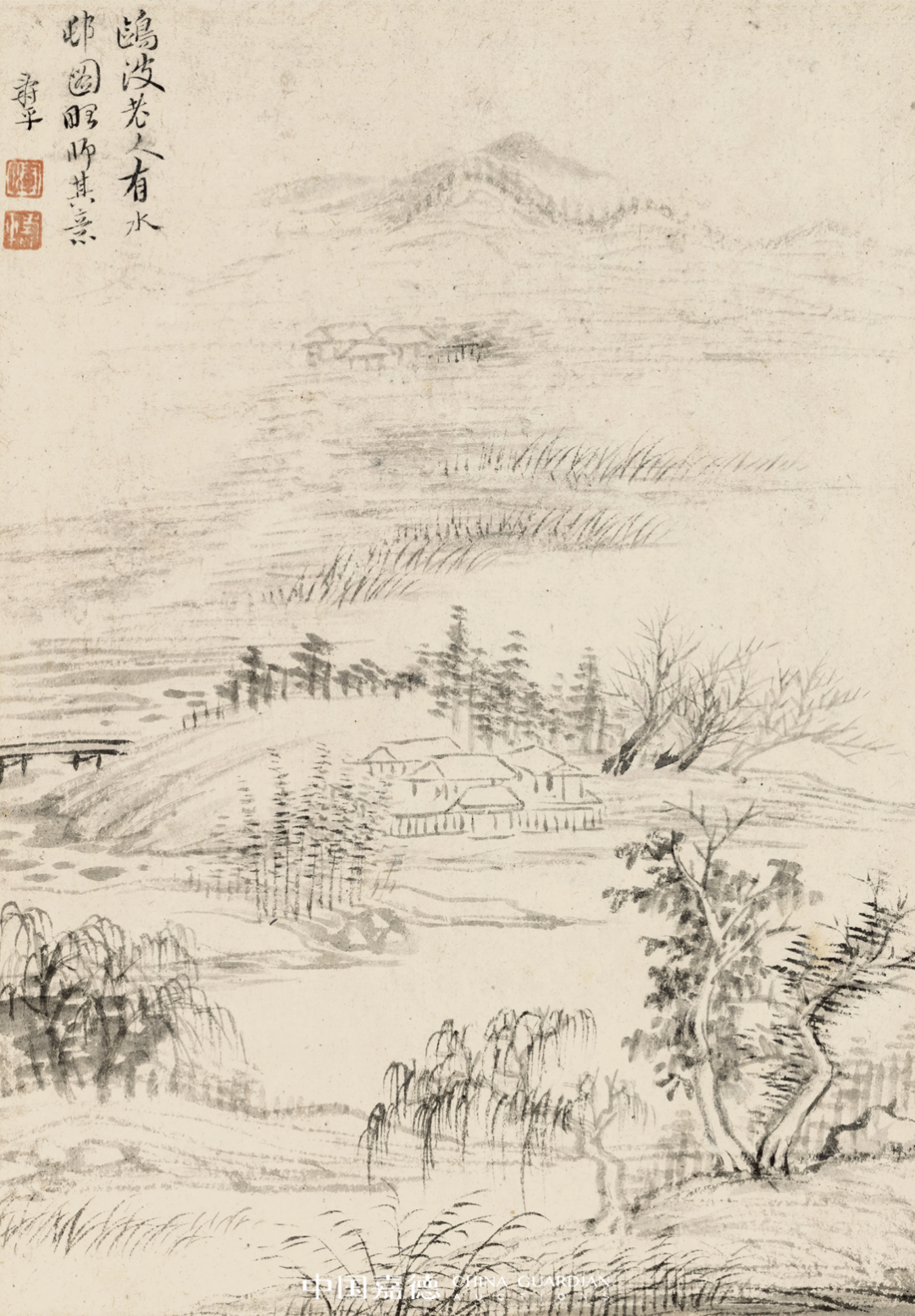 鸥波老人有水村图,略师其意。寿平。钤印:恽寿平(参见《中国书画家印鉴款识·恽寿平》第108印,1188页)