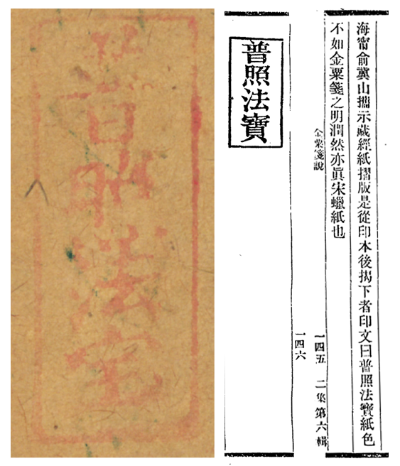 本册装潢精致,用藏经纸撞边装裱,册前空白页处稀见 “普照法宝”长方形印。清学者张燕昌的《金粟笺说》记录了藏经纸诸印,其中对这方印记载如下:海宁俞冀山携示藏经纸折版,是从印本后接下者,印文曰“普照法宝”。纸色不如金粟笺之明润,然亦真宋蜡纸也。