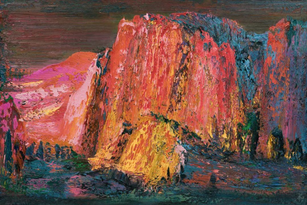 古人论画有云“写胸中逸气耳,今画者无此逸气,其何以窥云林之廓庑耶?”(何良俊《四友斋论画》)所谓逸气,在尹朝阳的画中成为一种操守,或是一种风骨,冷寂高寒,朔气萧森,苍茫与幽邃隐喻在绚烂的深处;超忽与升华,具有着深刻的悲剧色彩和崇高之美。凝练而纯静的笔触,抑压不禁的炽烈和愉悦,像火山冷却后的极静;阳光下裸露的山体,将生命之雄强之壮美活生生地屹立在天地之间,粗犷而细腻的岩石质地,透露出生命巨化的残酷与奇妙。已不再是“青春残酷”的冲动,更是痛苦体验后的冷静和沉重。其美学的指归并非传统意义上的逃逸,更像是摇滚后的交响,将生命深处的体验全然释放。