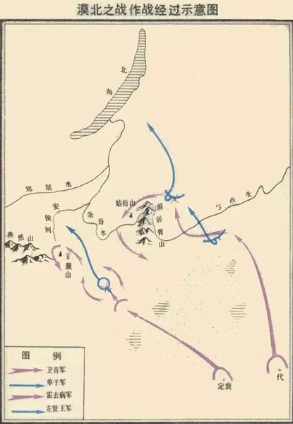 前123年的阴北之战,汉武帝派大将军卫青率6位将军领10万骑兵,一路大军穿越阴山东段,直接攻击匈奴单于,并没有其他方向军队的策应和佯攻。是役,汉军杀敌1.9万,然而也损失了3000多精锐骑兵,更导致前将军赵信兵败投降匈奴。因此虽然获胜,战后卫青并未得到加封。