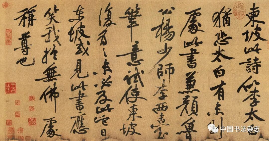 墨浓如糊使纸笔处于胶着状态,手不能悬令使转困于两难境地,这两个因素决定了东坡行笔迟钝类于描画的症候。米芾提倡无一笔不悬手,推崇振迅自然,这都是与苏黄格格不入的,所以他确实有理由提出否定的意见。