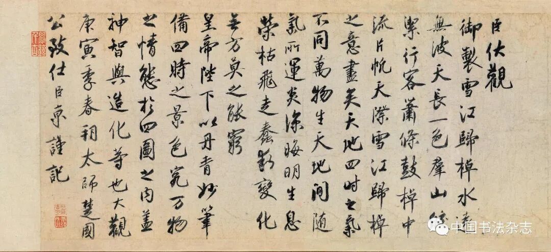 北宋 蔡京 行书跋赵佶雪江归棹图卷