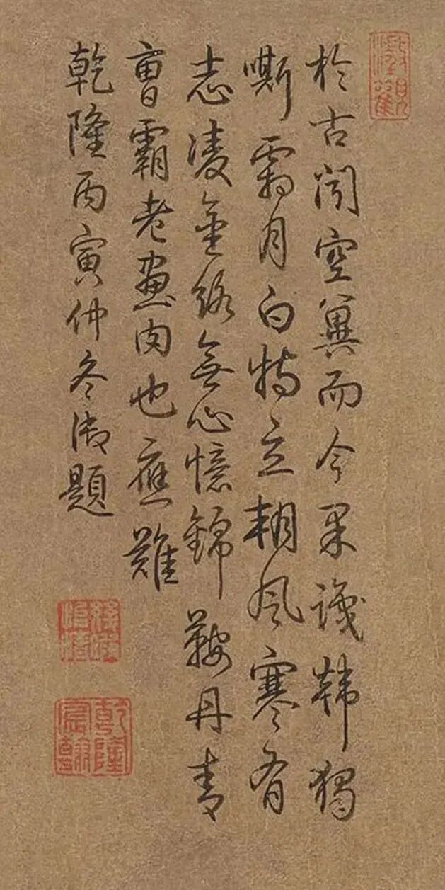 於古聞空翼,而今果識韓。獨嘶霜月白,特立朔風寒。有志凌金絡,無心憶錦鞍。丹青曹霸老,畫肉也應難。乾隆丙寅仲冬御題。