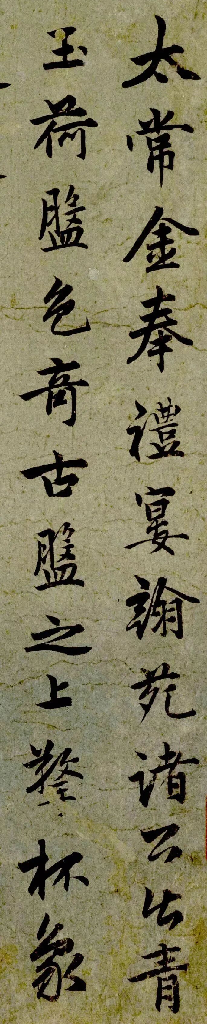 太常金奉礼宴翰苑诸公,出青玉荷盘,色奇古。盘之上擎杯,象莲蓬,下屈为柄,上覆为盖。盖青质而紫章,凡十九点,匠氏剜为莲房,殆夺天巧。嘱丹杨郭畀赋诗。诗固未足为杯盘夸,然将来或可讬诗以传也。碧云亭亭水天永,翠盖翻风堕秋影。文姬团扇感初凉,露华乱落明珠冷。紫茎绿叶歌秋兰,涉江折得烟蓬还。前缘已被专房误,守宫血点犹斑斑。麴生解后夸奇特,倒卷沧溟供一吸。太华峰高归路遥,但觉满怀春拍拍。俗眼傲睨瑠璃钟,金罍未用争夸雄。古诗调高和者寡,拟唤杜陵醉中把。至治初元修禊日。