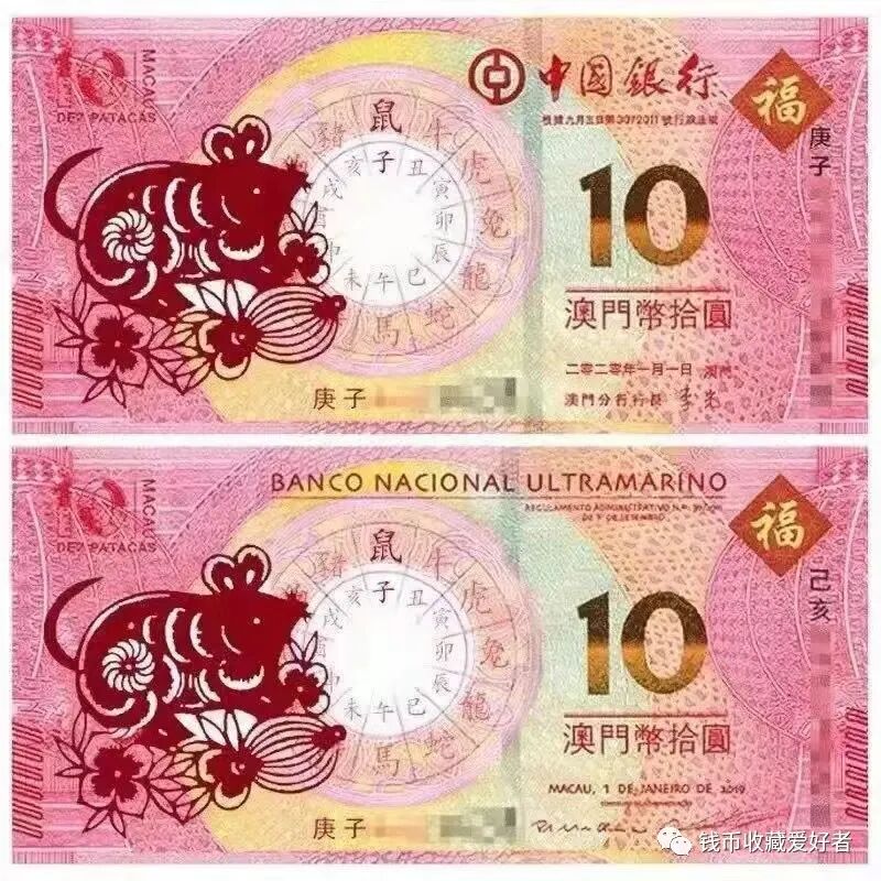 澳门生肖对钞以干支纪年作为冠字在近代钞票中属首次(如庚子鼠对钞使用“庚子”中文冠字);
