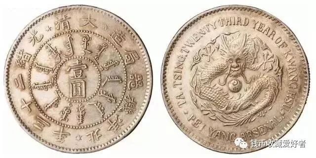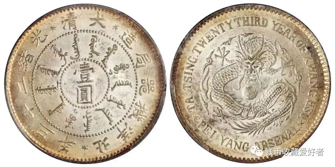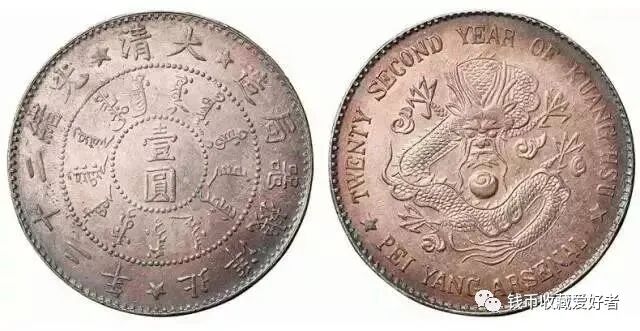 北洋二十二到二十四年间,北洋机器局所铸造的大清银币,他们的显著特点就是不用重量而用元,而北洋25用就是库平重量,这也反映出当时经历过激烈的元两之争,保守派与维新派之争。