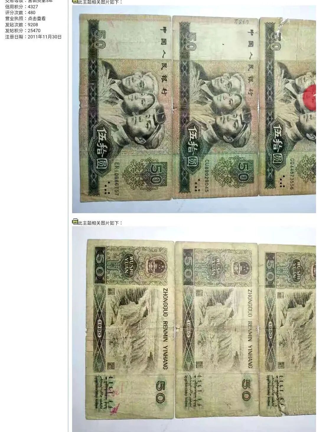 快到五一,币商开始布局礼品。为了不同消费群体的需求,大四同号钞的价格分别按品相从1000多元到5000多元不等,一分钱一分货,不同品相配的就不同价钱,卖家均说明品相。