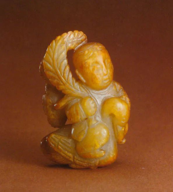 古代玉童子造型多持荷,这可能与民间生活习俗有关。据孟元老《东京梦华录·七夕》载:“七夕前三五日,车马盈市,罗绮满街,旋折未开荷花,都人善假做双头莲,取玩一时,提携而归,路人往往嗟爱。又少儿须买新荷叶执之,益效颦磨喝乐。”宋代持荷玉童子便是此习俗在艺术品中的体现。