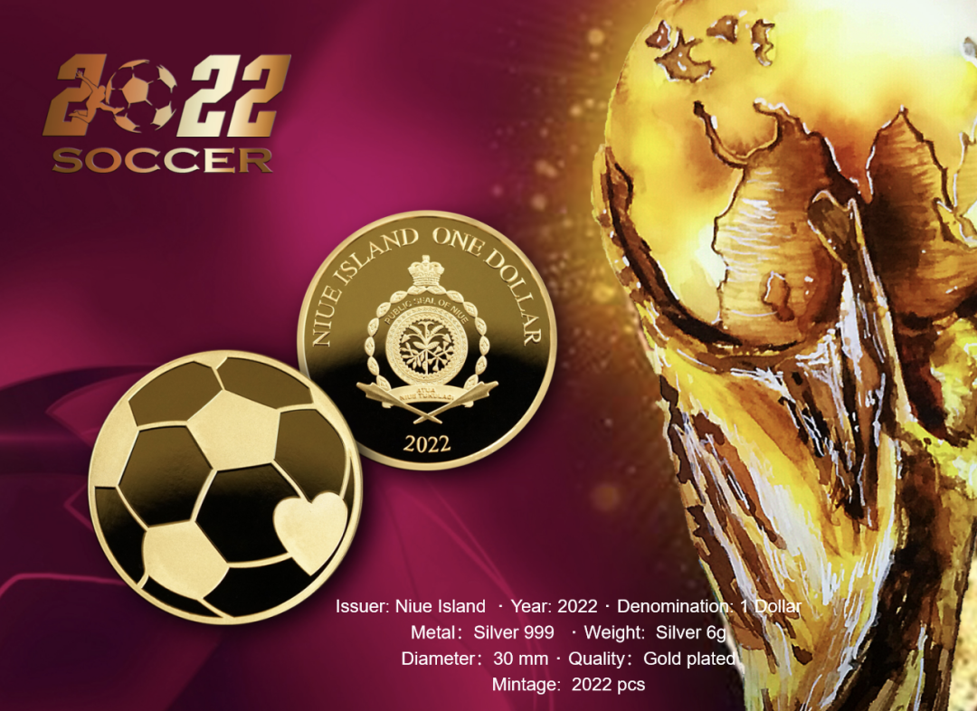 纽埃特别为此次世界杯发行了一枚足球银币,面值1DOLLAR,限量发行2022枚!