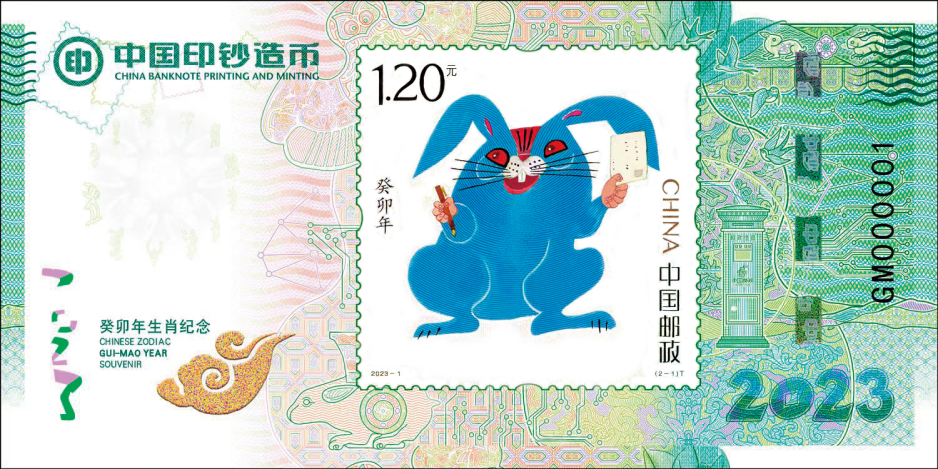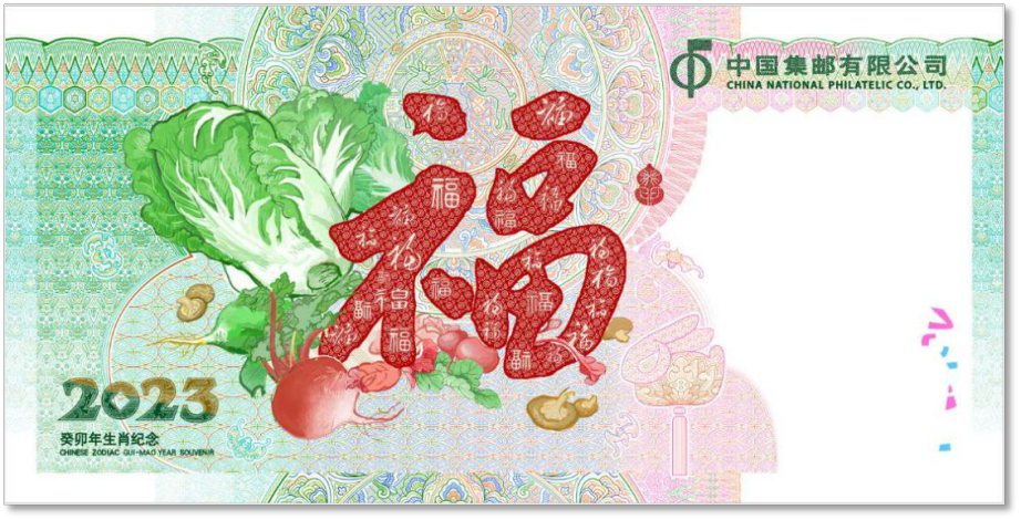 纪念券正面以中国邮政《癸卯年》生肖邮票创作的作品《癸卯寄福》为主要图案。