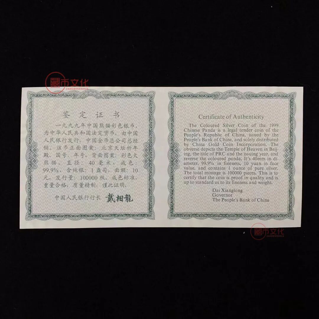 而且这枚银币已经发行25年,市场货源少,价格沉淀足,泡沫少,投资价值高~今天小藏带来的这枚1999年彩色熊猫币配盒带原证书。