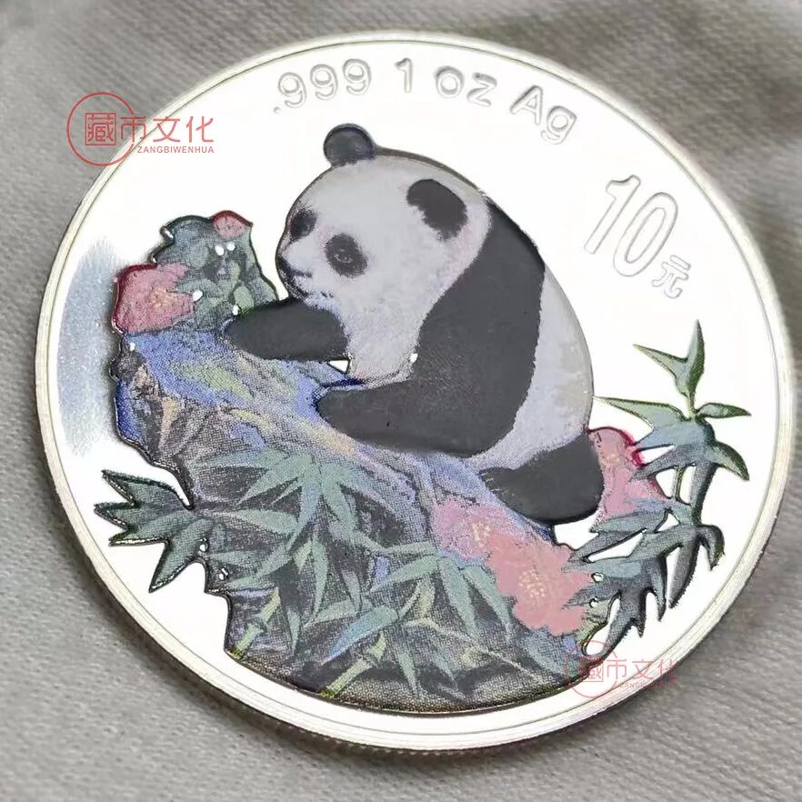 熊猫彩色银币,由1977年成立的私营造币厂、瑞士PAMP公司铸造。当时彩色币刚刚兴起,我国和瑞士的造币厂签署了有史以来规模最大的彩色币订单,直接促进彩色币的技术不断提升,使彩色币设计、生产和发行得以迅猛发展。可以说,熊猫彩色币作为我国第一批彩色币,在硬币发行史上具有划时代的意义。