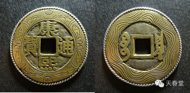第四,罗汉钱比普通“康熙通宝”钱体更厚重些。