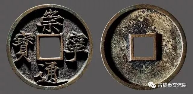 崇宁重宝,关于这个钱,到底是谁所书至今还在讨论,很多人认为其面文为蔡京所书,为什么会有这种猜疑呢?后人这样解释:钱上面蔡京故意把“崇”字的山和宗的竖笔上下贯通,连成一线;将“宁”字繁体之中的“心”省略,但这种说法被人否决,出土的崇宁重宝并没有出现这样版别的钱,不过这可让造假的有机可乘了,市面上一旦出现以上描述的钱币,肯定是仿品。