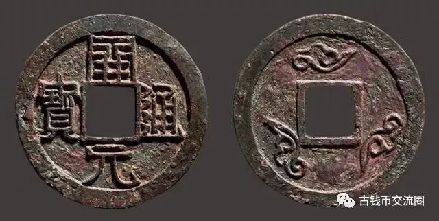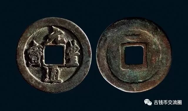 “开元通宝”。钱唐高祖武德四年(公元621年),为整治混乱的币制,开铸“开元通宝”,最初的“开元通宝”由书法家欧阳询题写,形制仍沿用秦方孔圆钱。