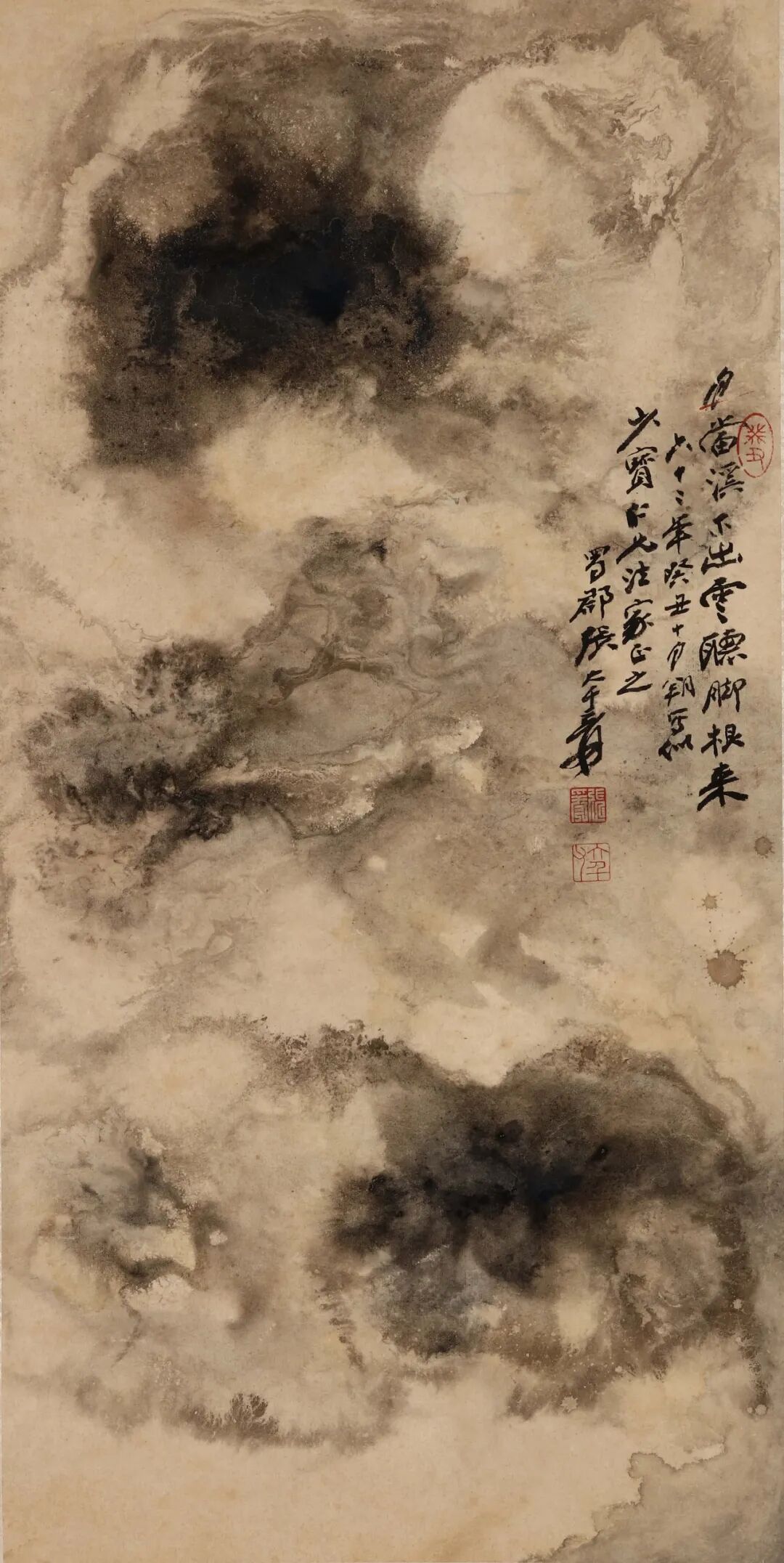 题识:月当溪下出,云听脚根来。六十二年癸丑十月朔写似少宝仁兄法家正之,蜀郡张大千爰。