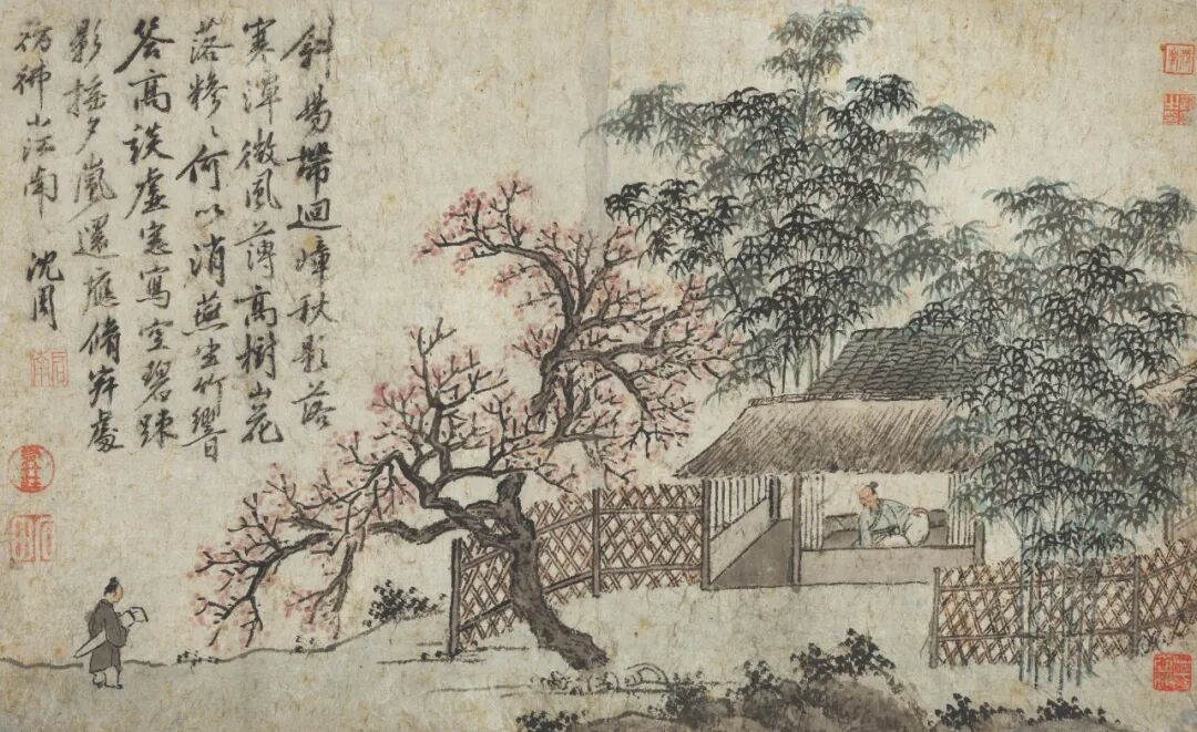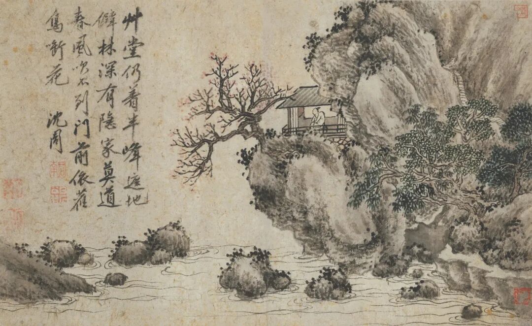 估价:港元 12,000,000 - 20,000,000香港佳士得,中国古代书画,2007年11月26日,编号864裴景福,《壮陶阁书画录》卷9,见《壮陶阁书画录》(3),台湾中华书局,台北,1971年2月,第580-581页;宋伯鲁,《知唐桑艾》卷1,见《中国书画全书》第10册,上海书画出版社,上海,1999年10月,第325页;郭味蕖编,《宋元明清书画家年表》,中国古典艺术出版社,北京,1958年11月,第138页;阮荣春,《明清中国画大师研究丛书沈周》,吉林美术出版社,长春,1996年 5月,第246页《石田先生水北幽居图》(珂罗版),无锡理工制版所;《支那南画大成》第15卷,兴文社,东京,1936年3月,第15-16页;中村茂夫,《沈周—人と艺术》,文华堂书店,京都,1982年4月,第245页;《明清名人中国画题跋》,陕西人民美术出版社,西安,2000年,第227-229页;(祝允明诗跋,顾文彬、宋伯鲁跋文)《南画大成》第9册,广陵书社,扬州,2004年9月,第2153页;《沈周绘画作品编年图录》(下卷),天津人民美术出版社,天津,第355-357页,2012年顾文彬,字子山、艮庵,号蔚如,元和(今江苏苏州)人,过云楼主人。1841年进士,官至浙江宁绍道台。工书,家藏书画。裴景福,字伯谦,号睫闇,安徽霍邱县人,壮陶阁主人。1886年进士,授户部主事,其后外放广东,历任番禺、潮阳、南海知县。工诗书,收藏金石、书、画、碑帖极富。胡璧城,字夔文,号藕冰,安徽泾县人。1897年举人。毕业于京师大学堂师范馆。民国期间曾任安徽省临时议会议长、北京国会参议院议员、政治会议代理秘书长等职。擅书法,好收藏。宋伯鲁,字芝栋,陕西醴泉人,硕学鸿儒,帖学书家。为力鼎康梁变法第一人。民国后仍忙于国事,其诗、书、画之造诣为世人所称道。