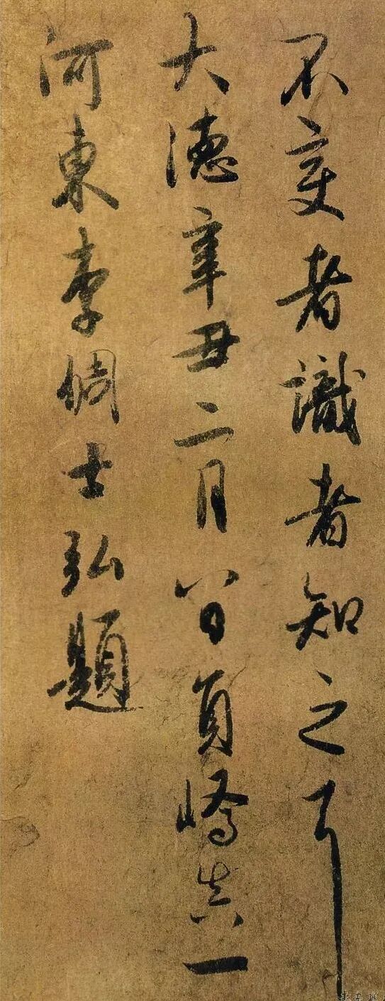 李倜,字士弘,河东太原人。官集贤侍读学士。大德中,出为临江路总管,后为延平路总管,两浙盐运使。工诗文,善书画,尤以墨竹最著名。《文赋》系唐代陆柬之行书法帖。纸本墨迹卷。书法婉润清丽,甚似《兰亭序》。有赵孟頫、李倜、危素、孙承泽等跋记。李倜此跋字体精劲,舒张得宜,行笔丰瘦有度,温润圆融,颇具右军风韵。