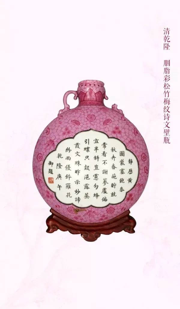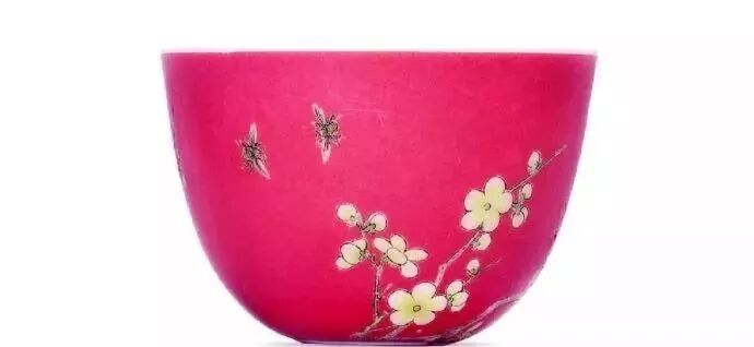 尽管胭脂红早由康熙年间就传入中国,但是限于科技含量高超、造价昂贵、成品率低等原因,胭脂红始终未被御厂普及使用,直到乾隆时期,对胭脂红的运用才真正达到自如程度,并被近乎奢侈地运用到了色地、轧道等装饰手法上。