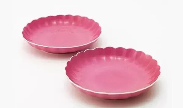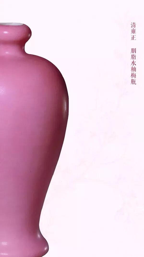 胭脂水釉瓷器的胎骨采用上等薄胎白瓷,内施白釉,外施胭脂水,内外相衬,愈发显出胭脂色的娇艳。