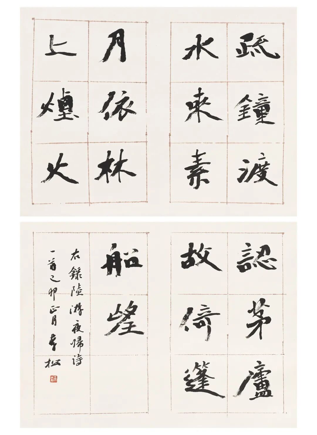 李松 行楷陆游夜归诗双挖