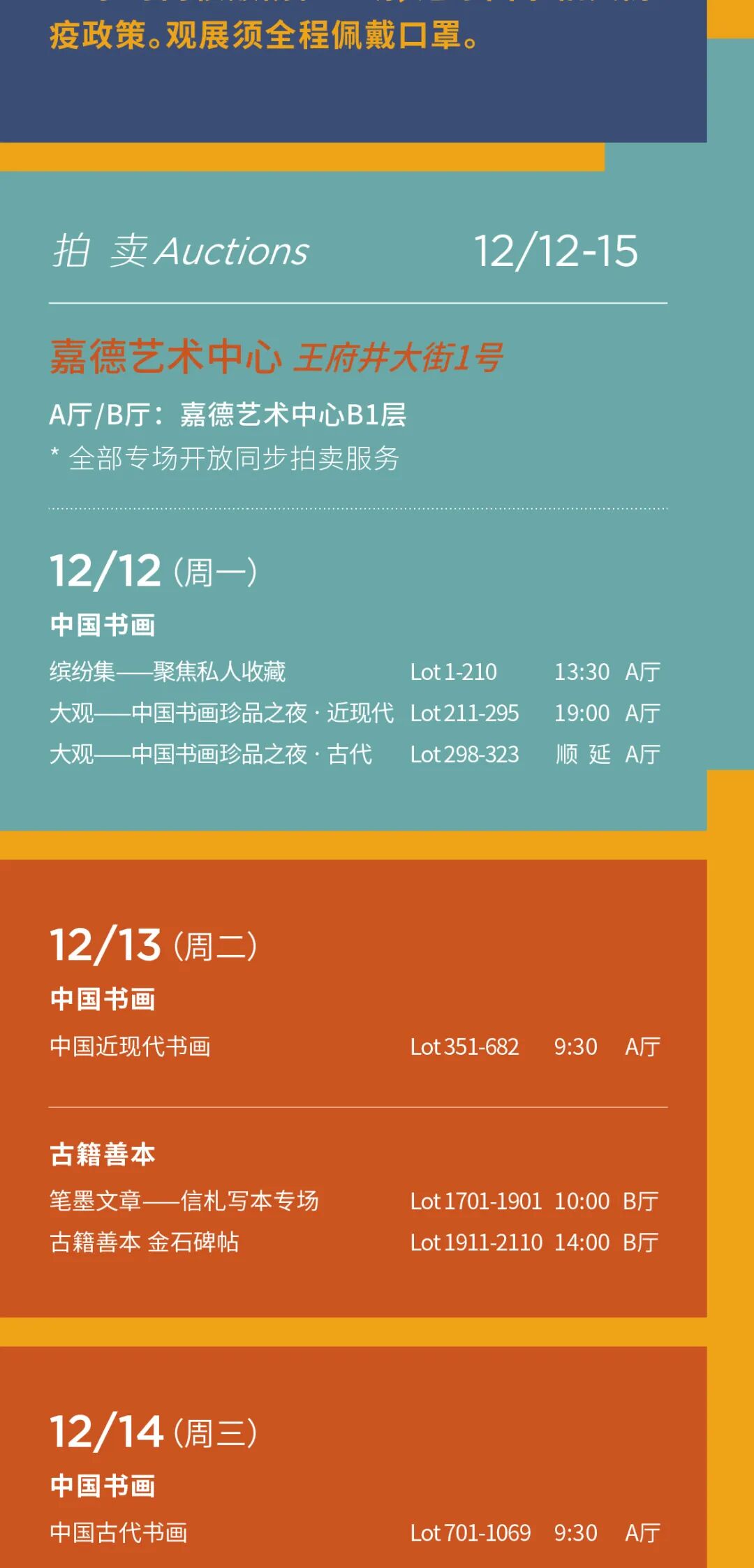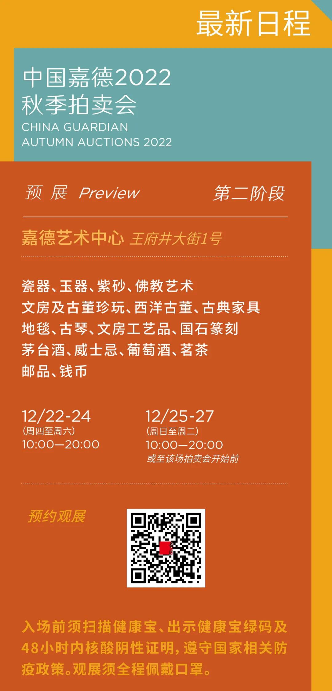 中国嘉德2022秋拍预展实行线上预约,敬请提前预约后观展。目前仅接受个人预约。