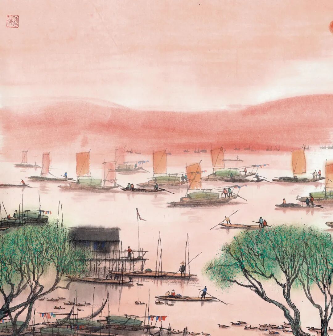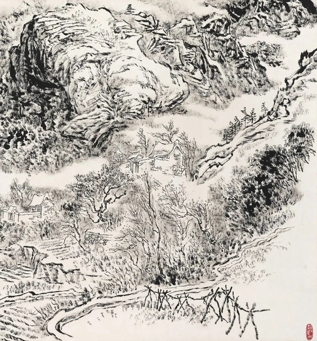 它虽不像大写意那样恣肆纵横,天马行空,但却不失“感性”和“自由”,从容、潇洒、淡雅、明净,无论是近处具体景物的描绘,还是远处迷蒙山色的晕染,全都不板不滞,不滑不黏,“松秀而纵意”,“表现出更多的随机因素”。而如此一来,便使得方骏的山水画虽然在艺术本质上遵循着古人“丘壑紧而笔墨松”的创作原则,但却有着自己的发展和创造。这种发展和创造便是方骏山水画所表现出来的传统笔墨与现代构成相互统一,相映成趣和相得益彰的美学特征。