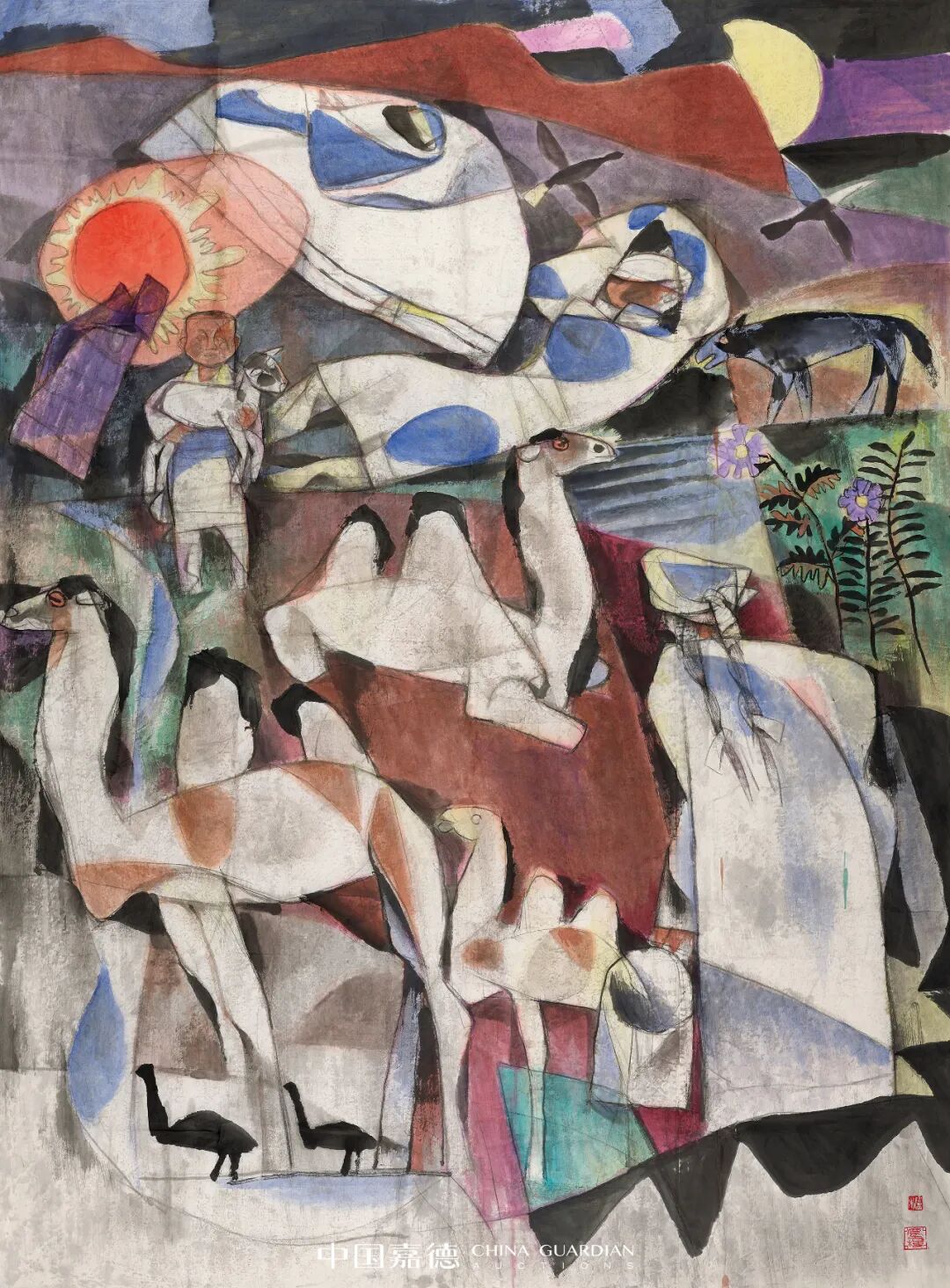 我觉得他是那种不断追求、不断探索、不断变换个人风格的画家。更像一个儿童,显得非常年轻,很活跃、很风趣,所以他的画也非常生动、非常有趣味。如果以西方画家来比喻的话,我觉得他更像毕加索。——钟增亚