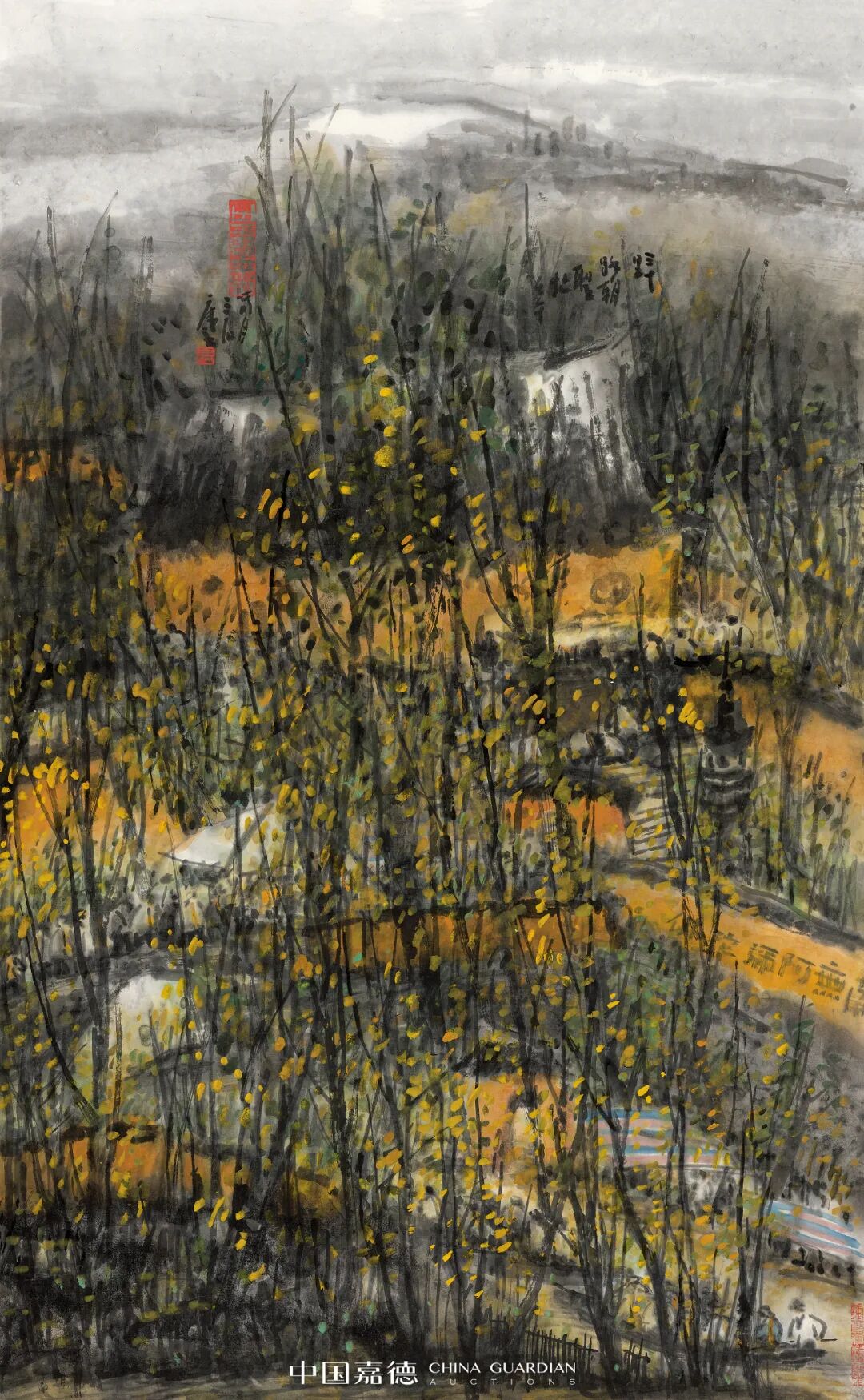 题识:春消息。二〇〇二年十一月,访四弟英惠于名山作赠小湘、雅云侄留念。大伯黄永玉,时年七十八矣。出版:《荣宝斋》,荣宝斋出版社,2022年九月刊。展览:“秋天的春消息—黄永玉水墨画展”,2022年10月28日-11月15日,嘉德艺术中心三层中厅空间。2.Lot1081—Lot1093,Lot1098—Lot1102为同一藏家旧藏,作品源自画家家属。