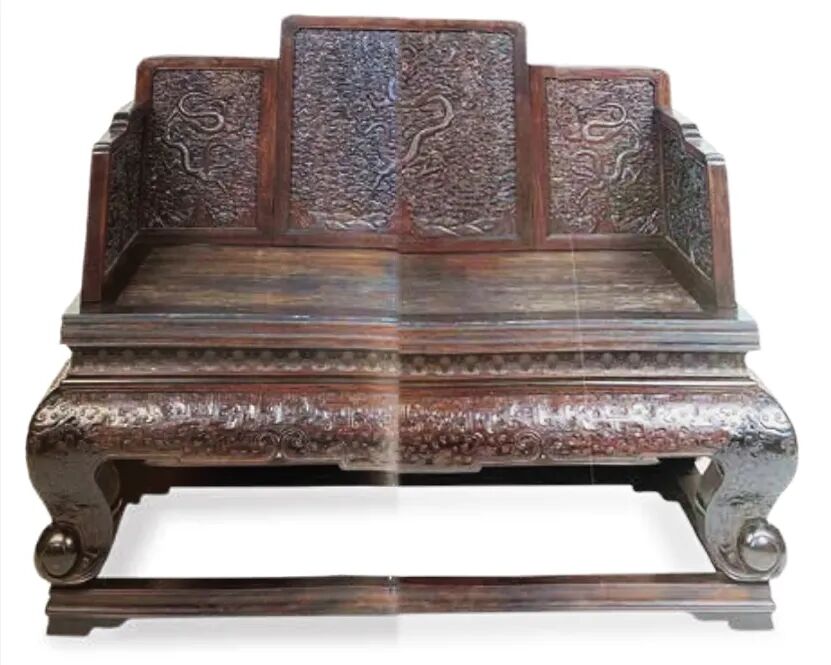 紫檀高束腰五屏风三弯腿带托泥大宝座(包镶做法)