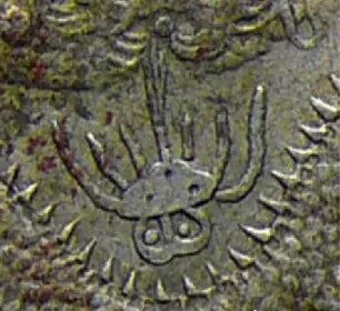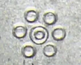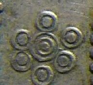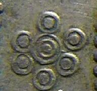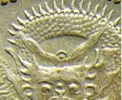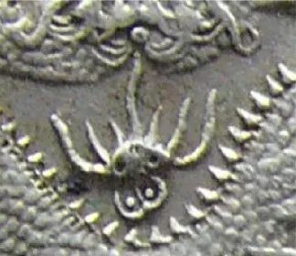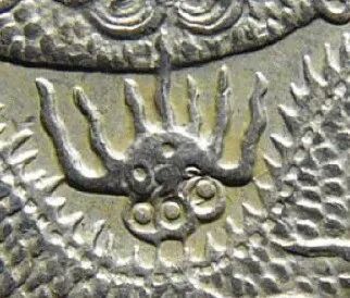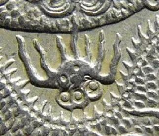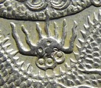 回珠钱是云南新龙早期高银版的统称,不是火焰圈里面有点的意思。它包括三空圈、三珠点以及正背边花中心都是单圈的二空圈和二珠点。回珠钱的右上龙爪短爪,边花中心只有单圈或圈点。