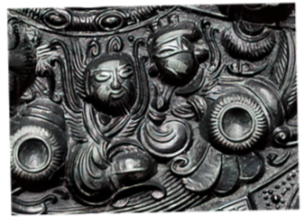 如东汉张衡《西京赋》在描写宫内乐舞场景时提到:“总会仙倡,戏豹舞罴。白虎鼓瑟,苍龙吹篪。”歌舞者装扮成豹、熊、虎、龙,应是傩仪与娱乐的融合。