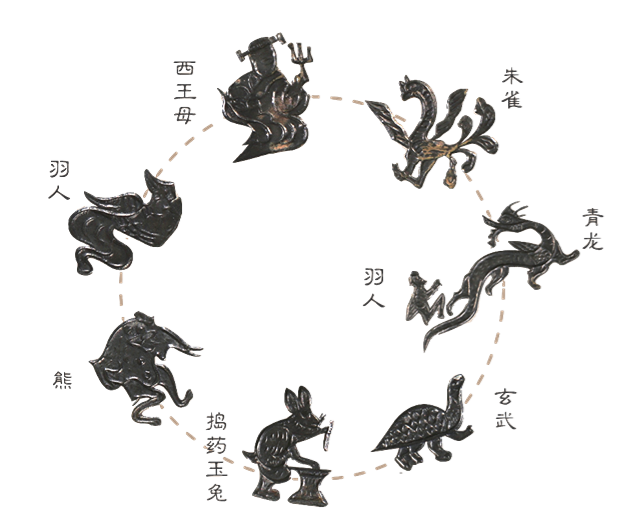 但在装饰有半圆和方枚的神兽镜中,则有西王母、东王公、黄帝、伯牙和子期等四组神人。这表明在东汉的造神运动中,不同的祀神体系、神话传说互相糅合,西王母、东王公的主神地位渐趋式微。