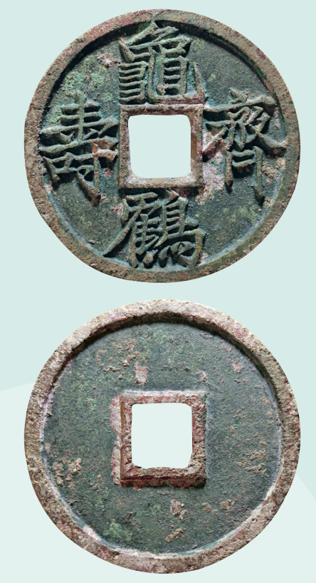 就两宋宫钱的整体而言,除金银质宫钱外,还应包括“大观通宝”特大型年号钱(也称出号钱),以及诸如“重华万寿”“德寿重宝”“天基万寿”“龟鹤齐寿”之类的大型铜质祝寿钱。还有一些形制特殊、工艺精湛、内涵寓意丰富的吉语或神怪类压胜钱也应归属于宫钱范畴,有待业界进一步考证揭示。