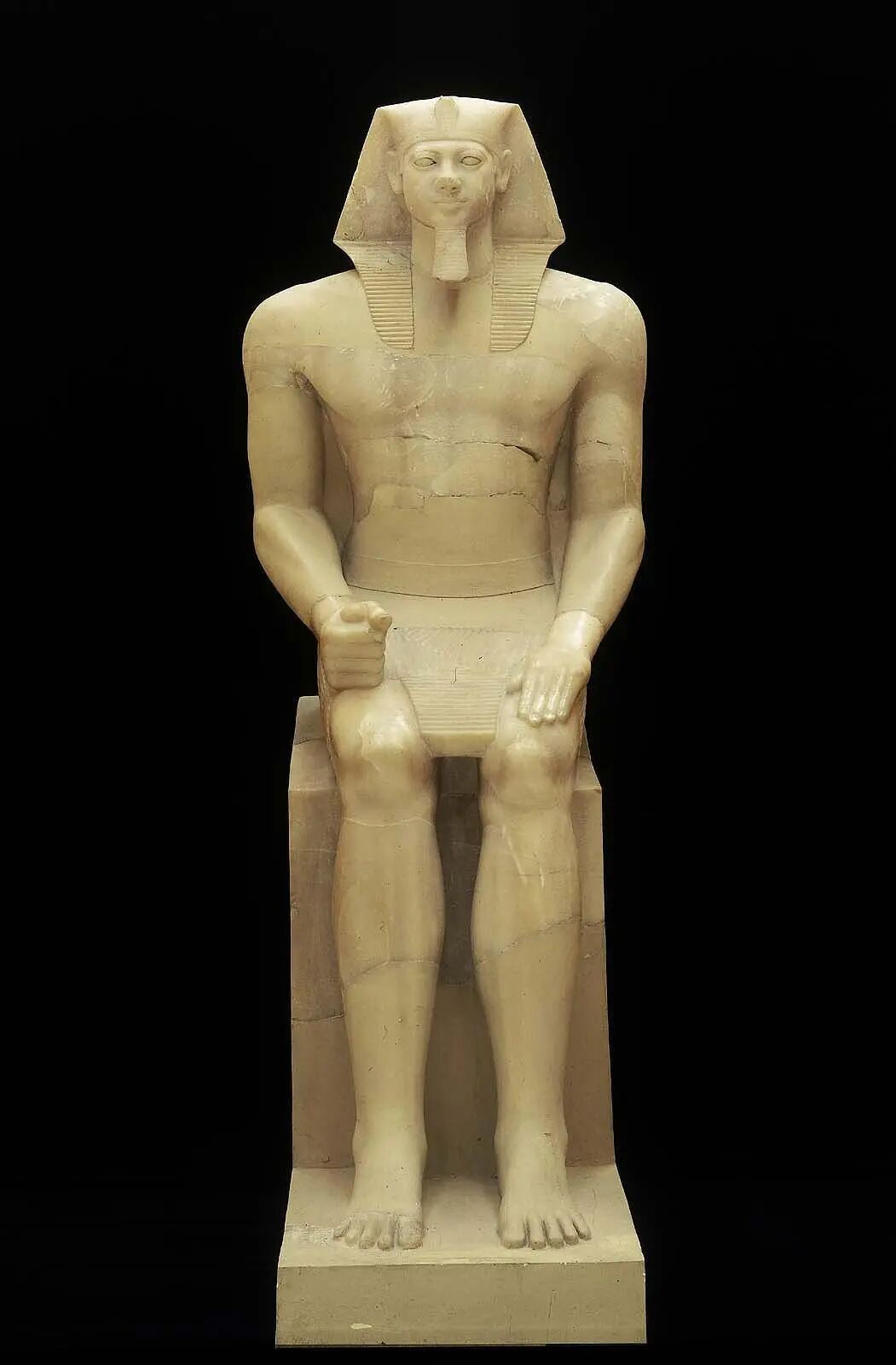 这座巨大的雕像是金字塔时代最大的雕塑之一。修复后的高度接近2.35米。这尊雕像的服装和头饰清楚地表明这是一位统治者。雕像展示的人物服装是旧王国结束前只有国王才会穿的。雕像的表情是表现出国王那威严的镇定和控制。