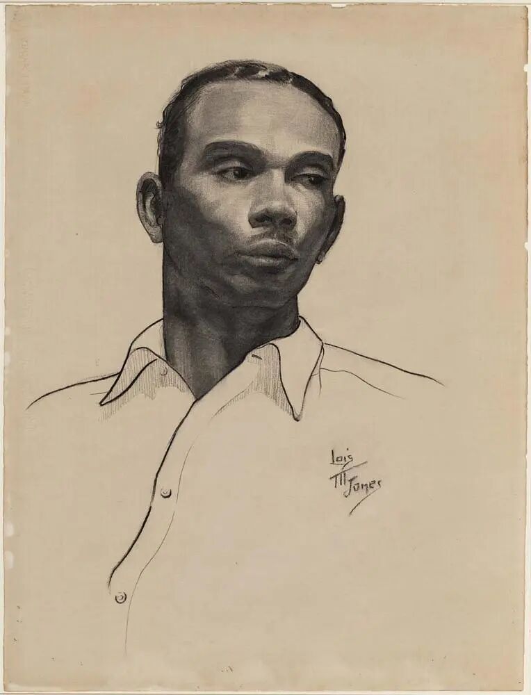 《黑人学生》,洛伊丝·梅鲁·琼斯,1934年,炭笔画