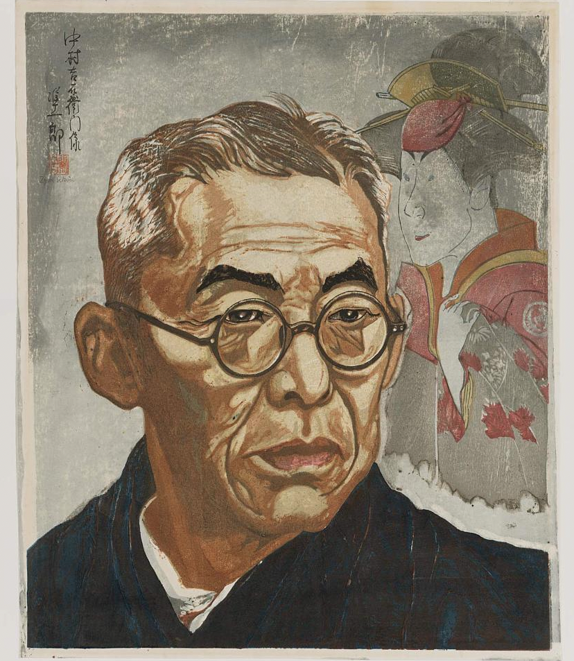 《中村吉右卫门像》,关野纯一郎,日本,昭和时代,1947年,木版画
