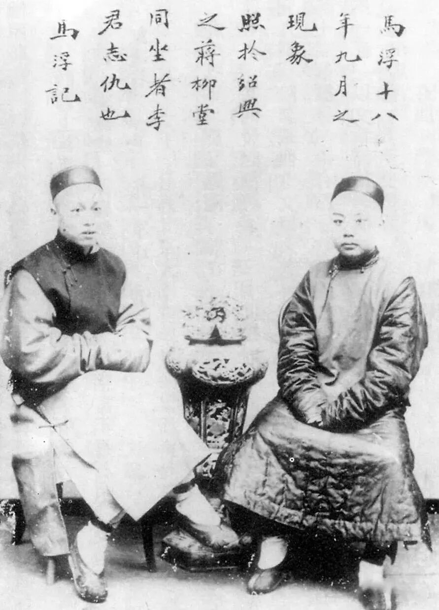 (左图)1900年9月,马一浮(左)18岁留影,并自题。