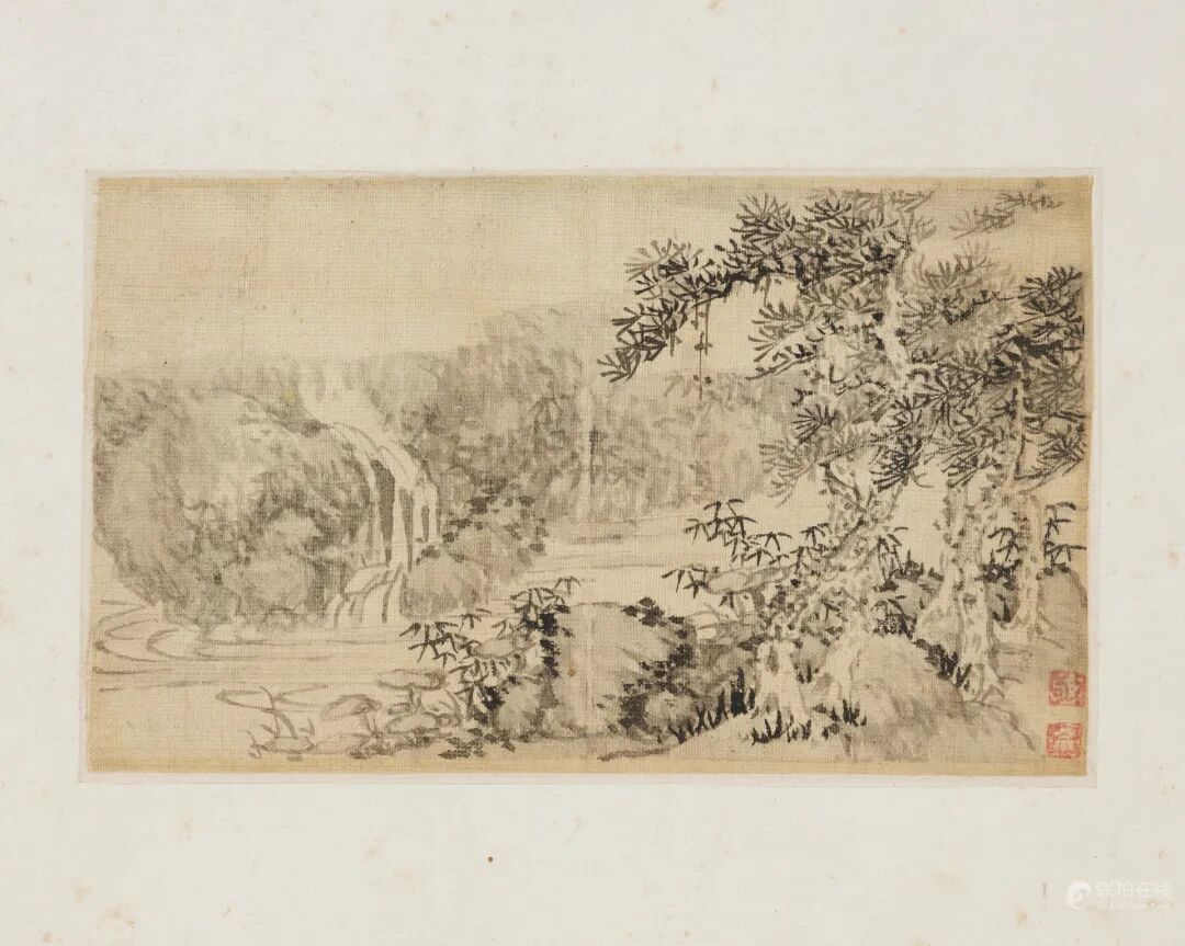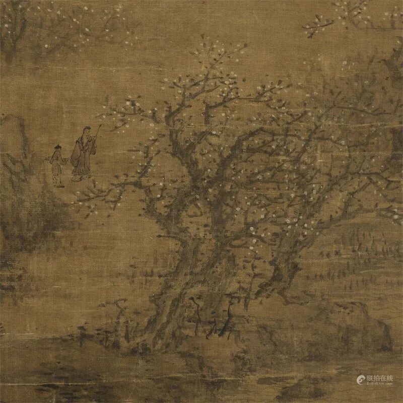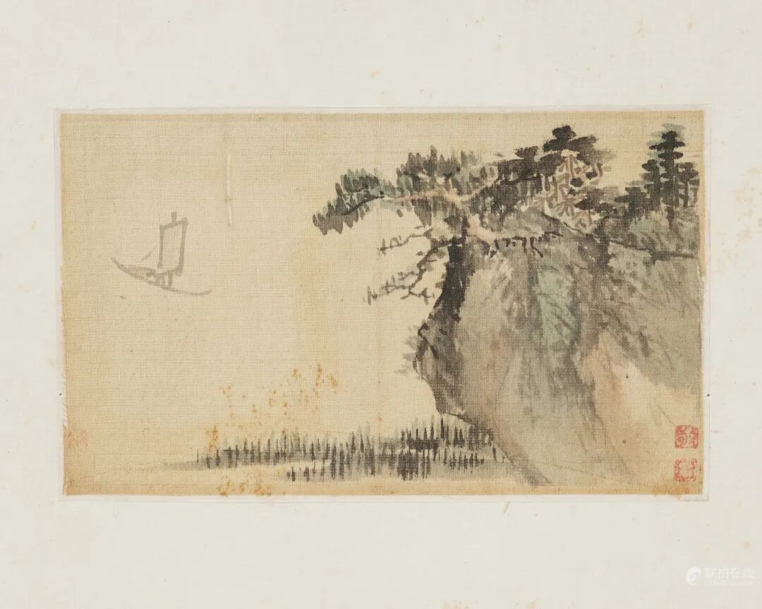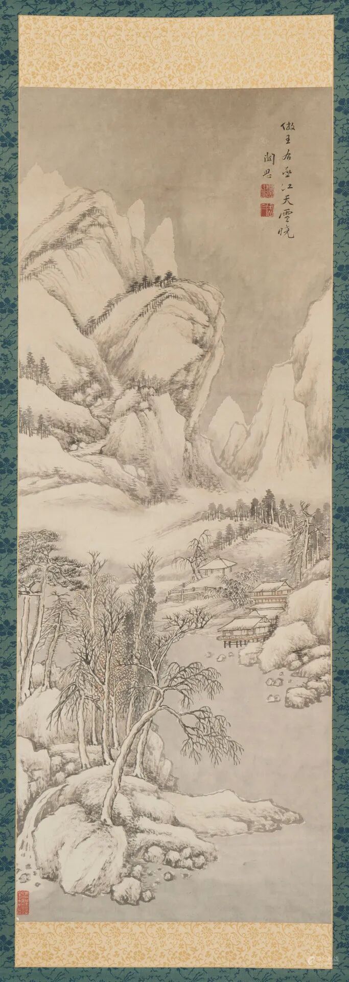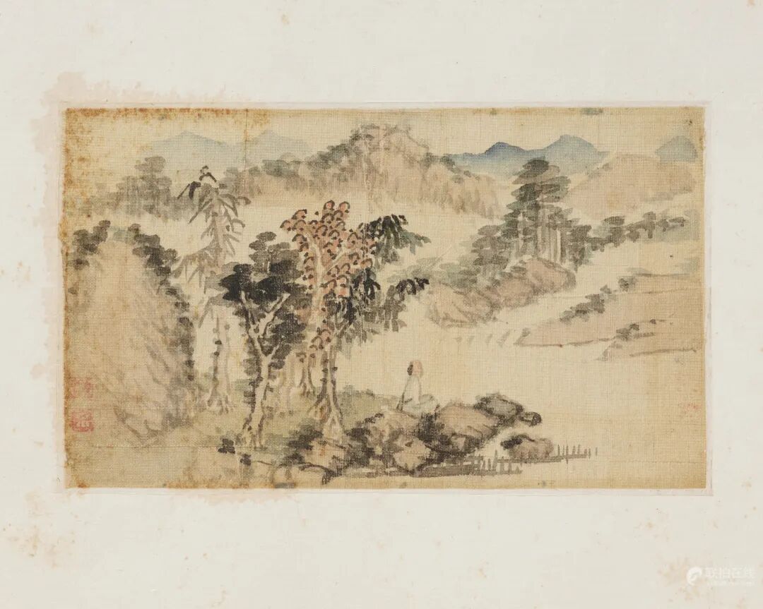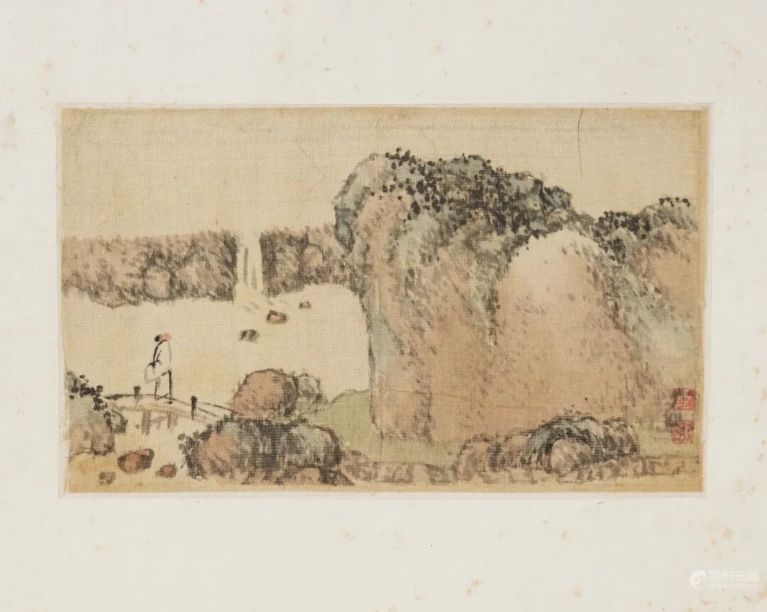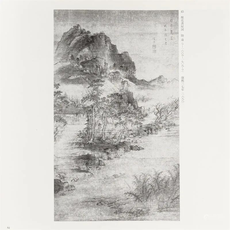 出版:「特别展中国絵画をたのしむ桥本コレクションを中心に」〈渋谷区立松涛美术馆 平成10年〉64页 No.45。展览会:「中国絵画をたのしむ」1998年 渋谷区立松涛美术馆作者简介:陆远是明末清初独具匠心的画家之一。他所画的山水画笔法细腻,不归属于这个时期的任何流派。此画作于康熙 37 年(1689 年),河川横断画面的大胆构图,以山中人家为中心配以松竹梅。是一副让人感受到大山中充满吉祥气氛的抒情山水画。「清溪横步」册是故宫博物院(台北)馆藏作品,陆远本幅作品的画风与其有异曲同工之妙处。