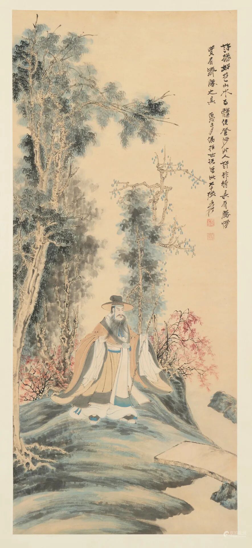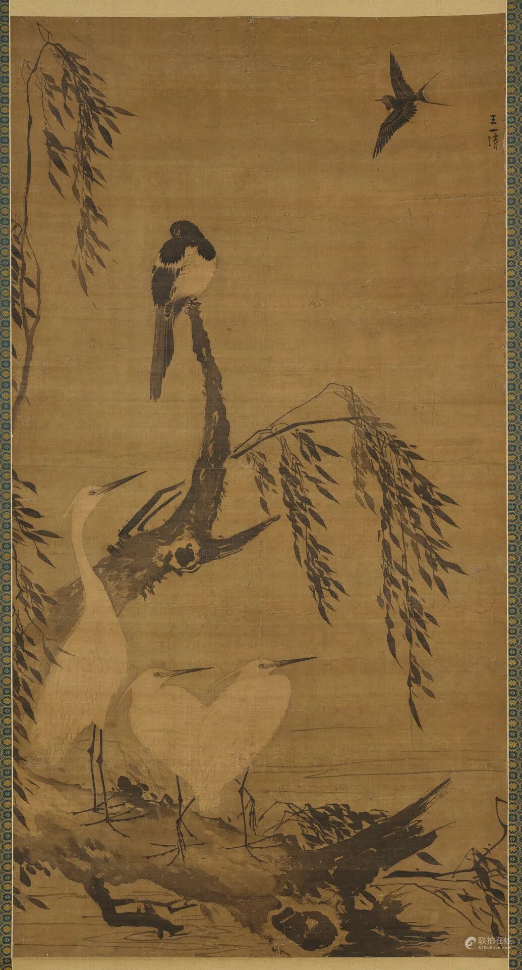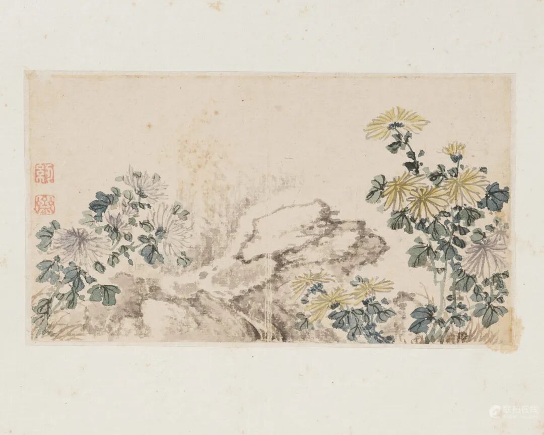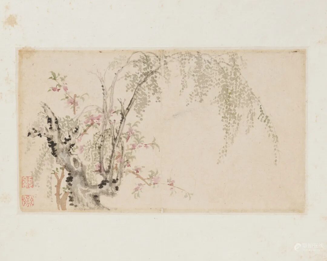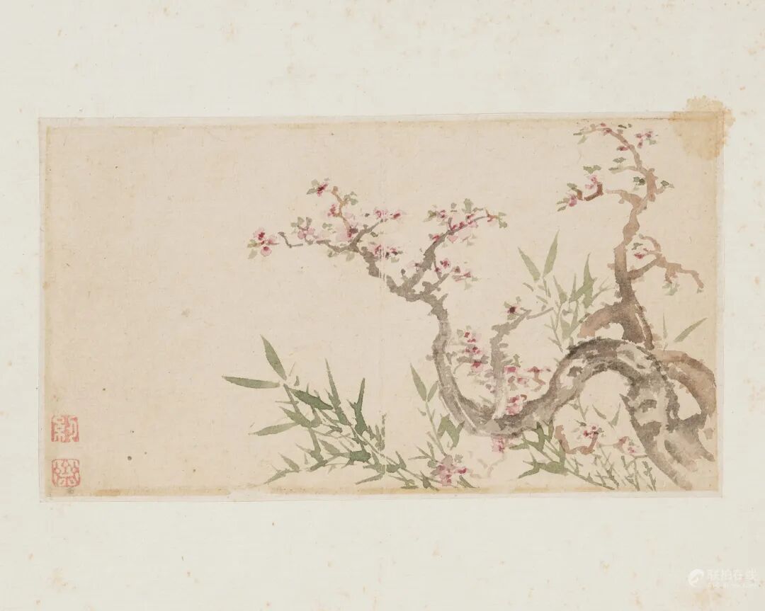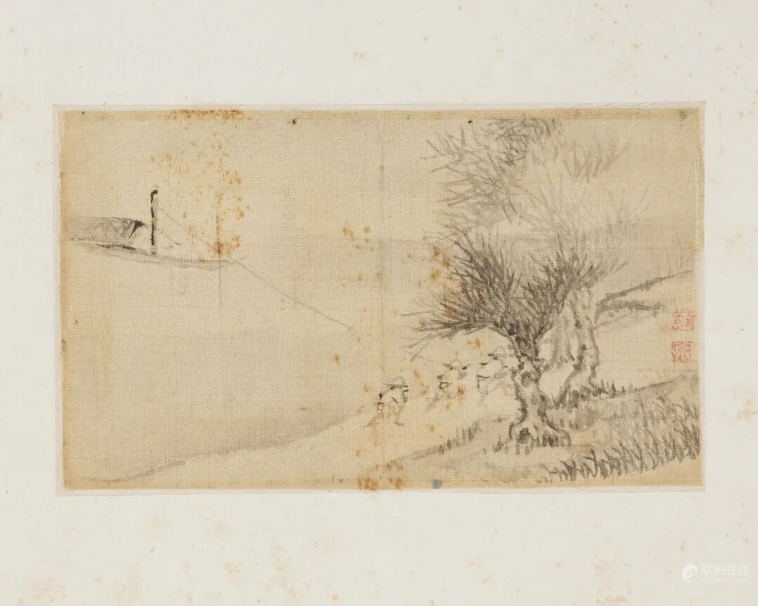 出版:「特别展中国絵画をたのしむ桥本コレクションを中心に」〈渋谷区立松涛美术馆 平成10年〉64页 No.45。展览会:「中国絵画をたのしむ」1998年 渋谷区立松涛美术馆作者简介:陆远是明末清初独具匠心的画家之一。他所画的山水画笔法细腻,不归属于这个时期的任何流派。此画作于康熙 37 年(1689 年),河川横断画面的大胆构图,以山中人家为中心配以松竹梅。是一副让人感受到大山中充满吉祥气氛的抒情山水画。「清溪横步」册是故宫博物院(台北)馆藏作品,陆远本幅作品的画风与其有异曲同工之妙处。