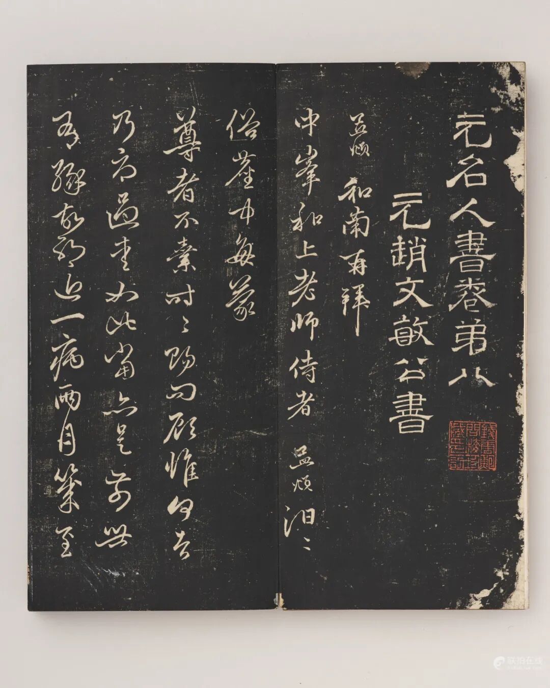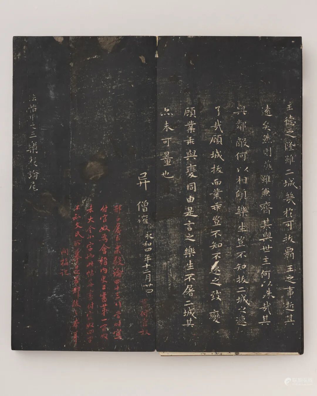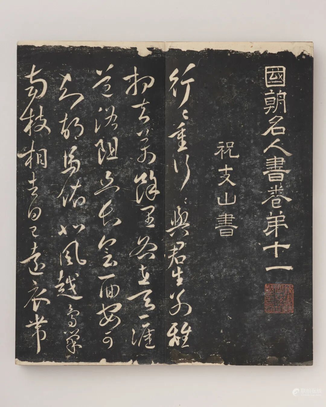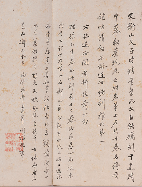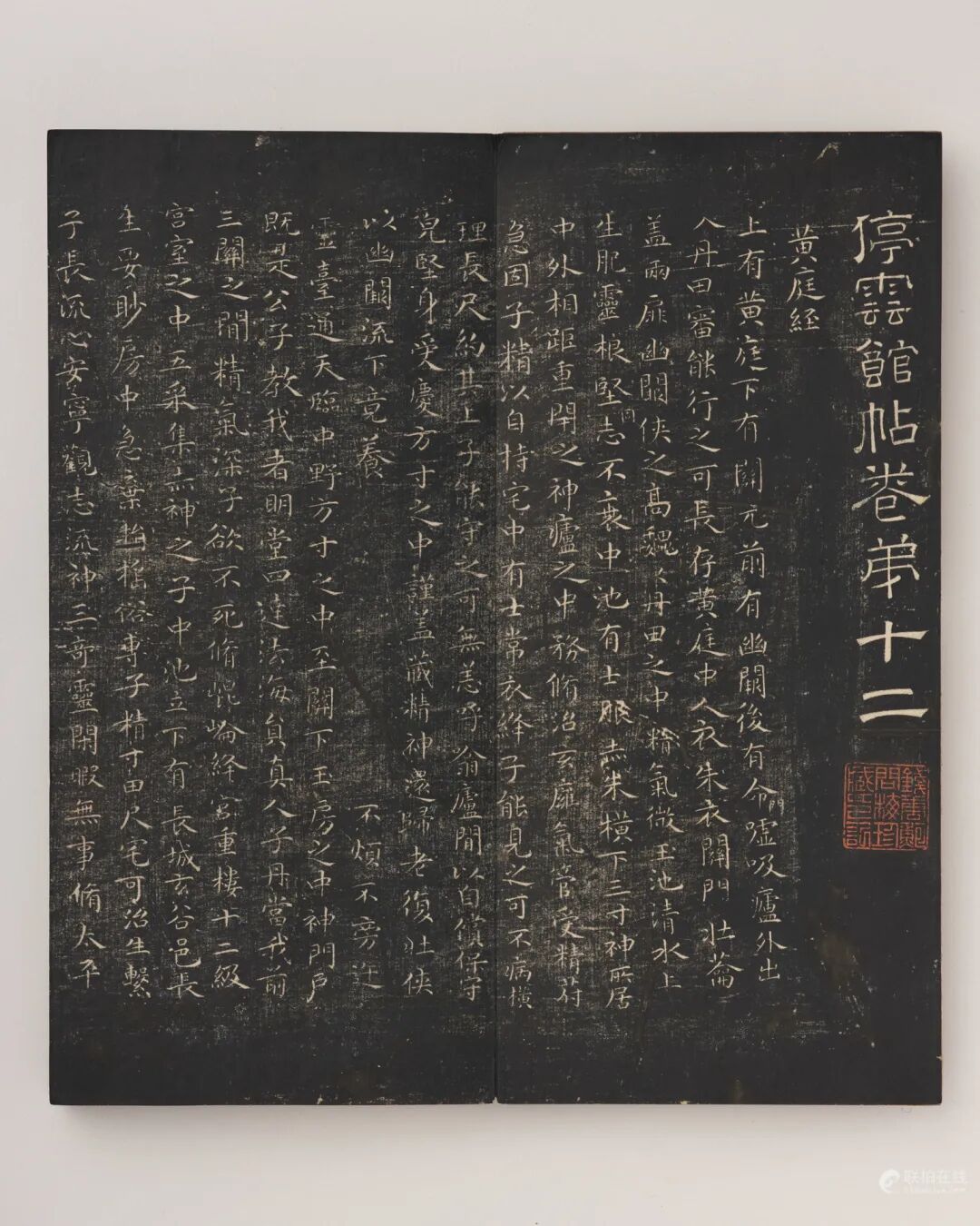 题跋:卷一《乐毅论》后有鲍问梅朱笔题记:邢子愿云:“《乐毅论》四十三行,当时写付官奴,为会稽内史正书第一。”官奴者,大令小字也。此帖无“书付官奴”四字,不知文氏所摹是否邢跋之本耳。问梅记。鲍问梅跋语:文衡山父子皆精书学,而又自能镌刻。于嘉靖中,摹勒旧迹及当时名笔上石,共十卷,为停云馆帖。清劲不俗,近世诸刻推此弟一。右孙退谷《闲者轩帖考》一则。按孙云十卷,而此刻有十二卷,后两卷一为祝京兆书《古诗十九首》,一为衡山自书。观京兆跋云:暇日过休承读书房,案上墨和笔精,粘纸得高丽茧,漫写十九首遂能终之。”想见文、祝风流,自然千古。休承者,名嘉,为衡山令子。咸丰五年上元节,问梅记笔。鉴藏者:鲍问梅,字文湄,钱塘(今浙江杭州)人,清晚期收藏家,活跃于道咸年间。停云馆法帖是明代最为著名的汇刻丛帖,由文徵明选集,其子文彭、文嘉摹勒,自嘉靖十六年(1537)刻第一卷,至最后一卷刻完历时二十余年。本藏品为清代拓本,第一卷为晋小字,第二卷为摹晋帖,第三卷、第四卷为人真迹,包括孙过庭《书谱》、颜真卿《祭侄文稿》等,第五卷至第七卷为名人书迹,第八卷、第九卷为名人书迹,第十卷、第十一卷为明代名人书迹,第十二卷为文徵明书迹。每卷题目之下钤有鉴藏印「钱鲍问梅珍藏印记」。