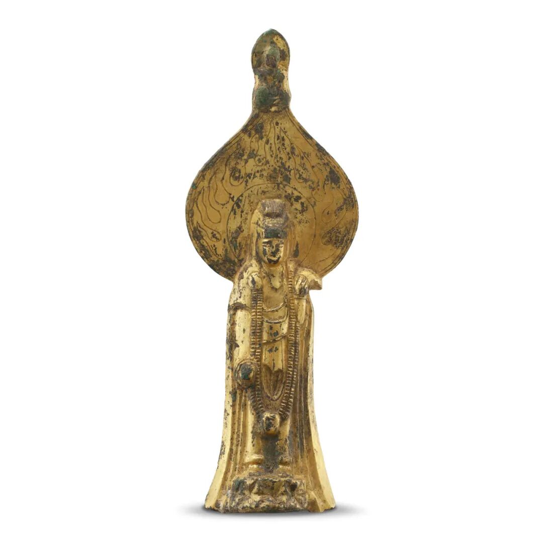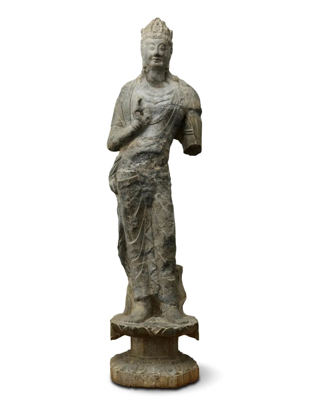 来历:邦瀚斯2014春季拍卖 中国艺术精品 Lot 8218w,肯尼斯与蒙哥马利基金会,此雕塑于1970年以前被美国私人家庭收藏 。参阅:《中国古代雕塑珍品》台北,1997年,第62页。《5-14世纪中国雕塑》 曼谷,1998年,第413A。《上海博物馆-中国古代雕塑画廊》上海,1996年,第59页。说明:此拍品整体风格造型与河南洛阳龙门石窟造像有着极为密切的关联。
