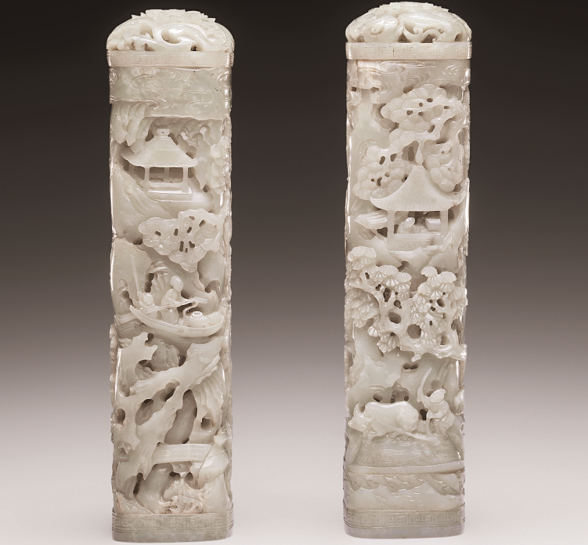 清·青玉山水人物图香筒一对 北京故宫博物院