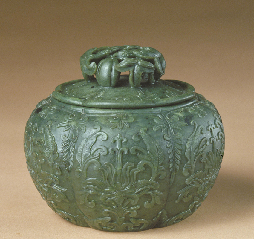 清·碧玉莲花纹瓜棱式罐 北京故宫博物院