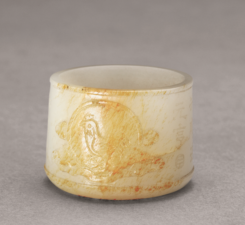 清乾隆·御题诗青玉鸡兔纹扳指 北京故宫博物院